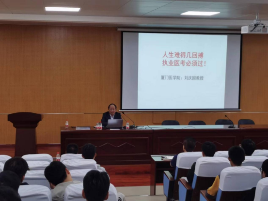 针对威廉希尔体育临床医学专业学生,刘教授以“人生难得几回搏,执业医考必须过”为题展开报告,就医考考试形式、时间、流程、题型等问题为同学们进行了详细的讲解,为同学们分享了考试过程中的答题技巧,最后刘教授鼓励同学们心中要有目标,手上要有行动,为提升执业医考通过率早准备、早努力、早奋斗!刘教授的报告深入浅出、图文并茂、精彩纷呈,赢得了现场同学们的阵阵掌声,使同学们对今后的职业生涯规划有了更深的理解,也有了更明确的学习目标。