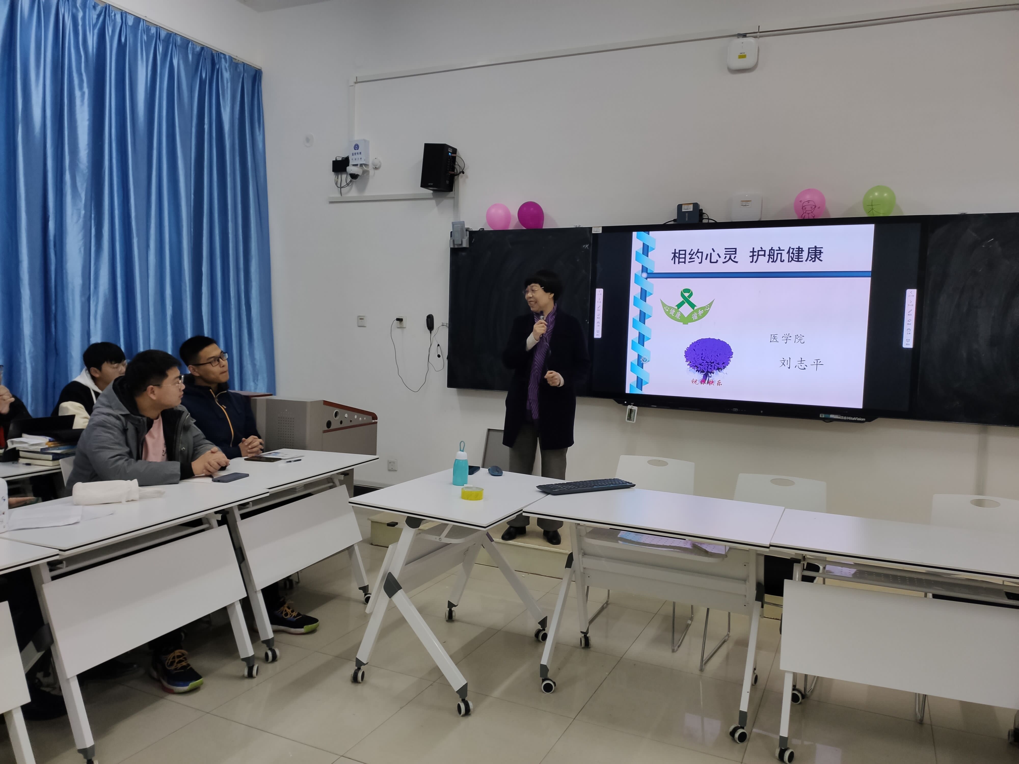 为了提升大学生对于心理健康的了解,并保持良好的心理健康状态,临床医学专业于12月16日晚在教学楼C206教室,举办了以“相约心灵,护航健康”为主题的师生座谈会。此次主讲的是刘志平老师,参与人员有杨笑怡老师及临床医学专业的全体同学。