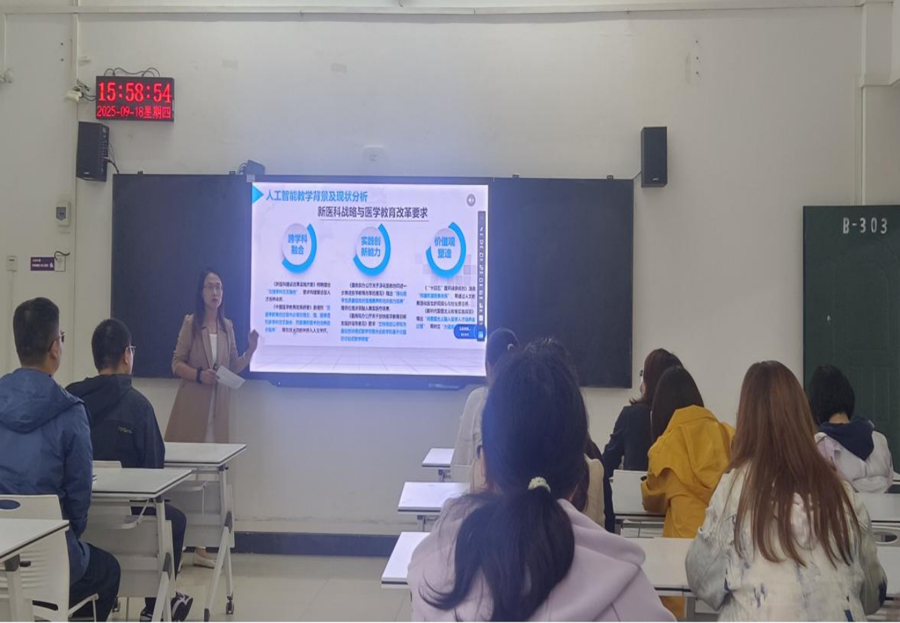 展示环节结束后,与会教师围绕“AI是否会削弱教师主导权”“数据安全如何保障”“跨学科团队怎样组建”等热点展开研讨。现场交流气氛热烈,碰撞出诸多建设性思路,对推动人工智能与医学教育教学的深度融合具有积极意义。